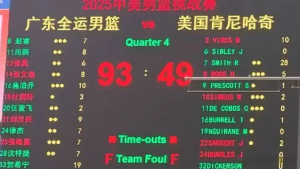 全场比赛结束广东全运会93-49美国肯尼哈奇队。这场比赛广东打得还是非常轻松,因为对手的实力还是太弱了金岭速配,广东开局就保持碾压,最终完成大胜,这波热身赛基本上都是旅游队。