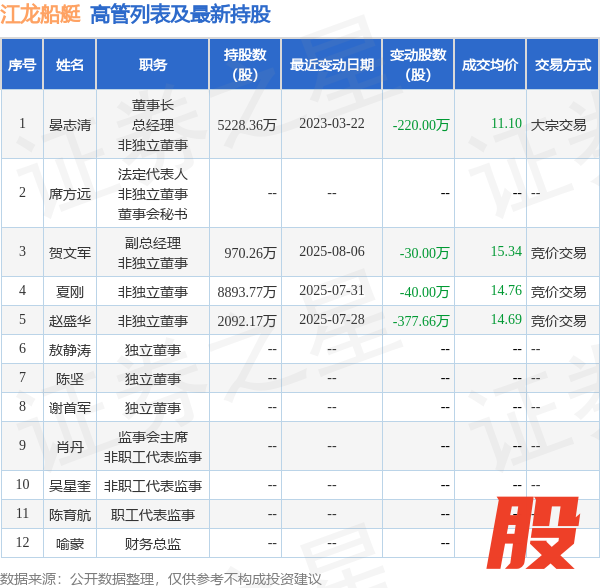 江龙船艇的高管列表及最新持股情况如下: